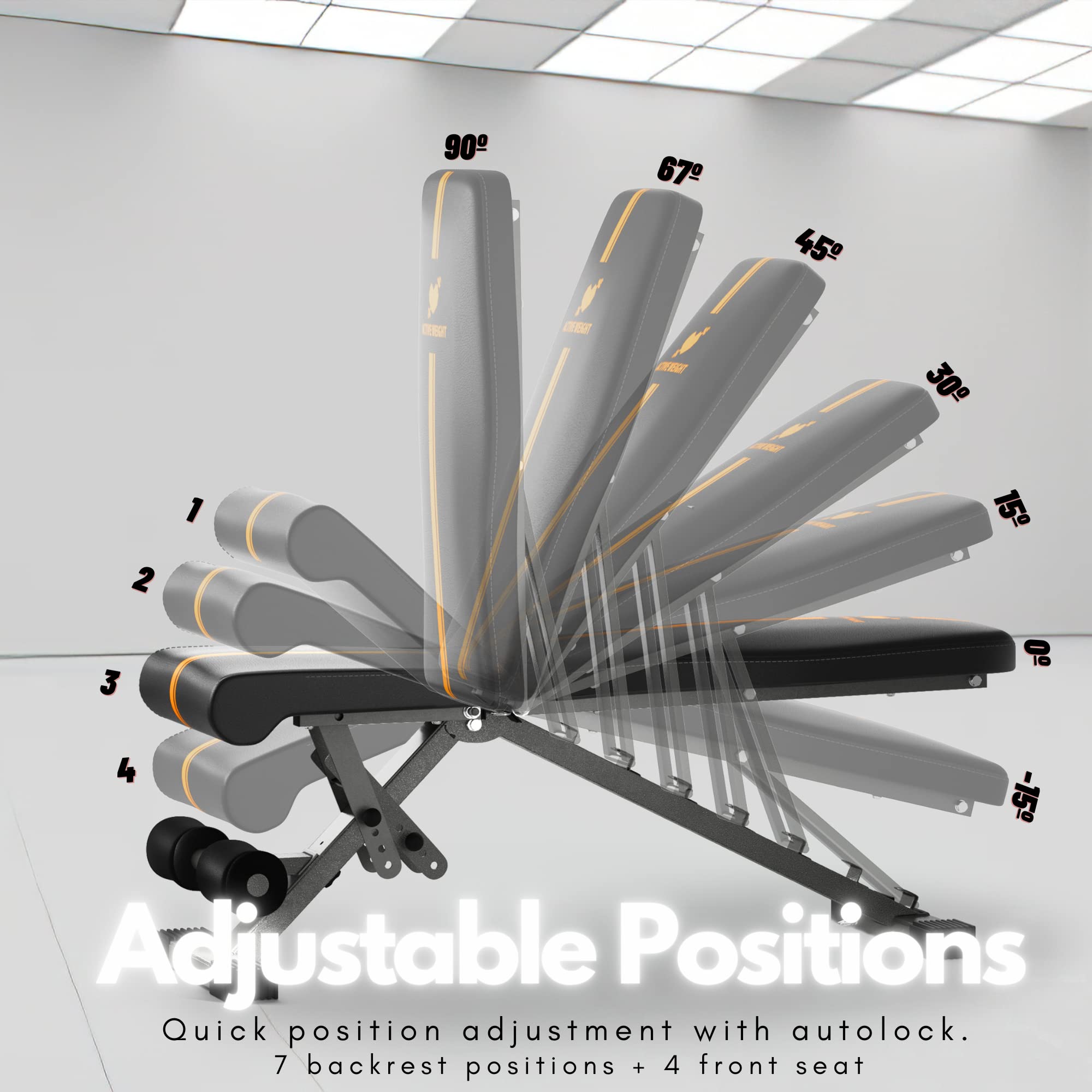 - IN 11 POSITIONEN VERSTELLBAR 📏: Die ACTIVEWEIGHT AW-0012 Bank kann auf die folgenden 11 Positionen eingestellt werden: Neigung: 90°,67°,45°,30°,15°︱Flach: 0°︱Negativ: -15°︱Die vordere Sitzfläche kann in vier Positionen variabel eingestellt werden.