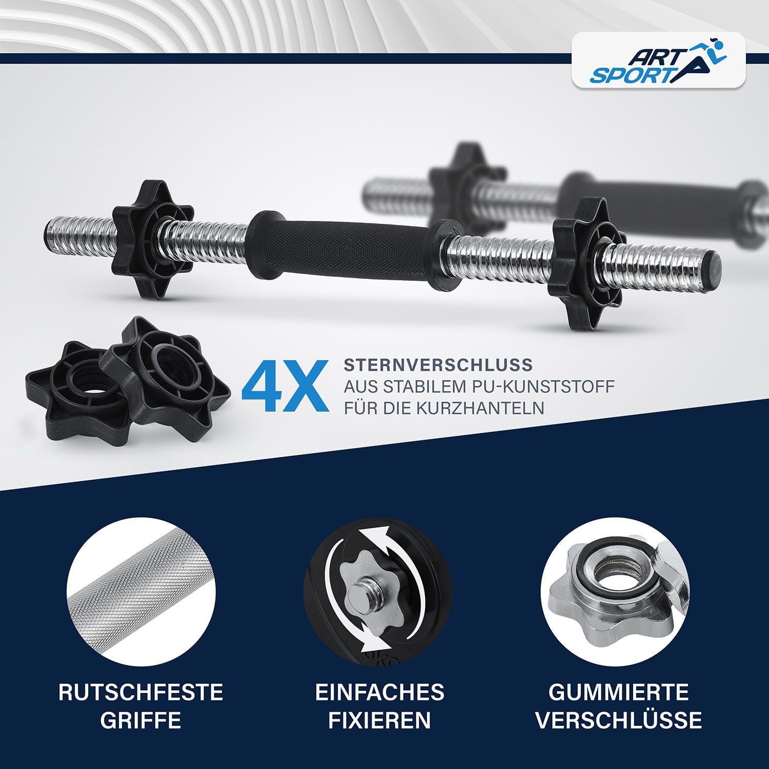 - ✔ Rutschfeste Griffe: Rutschfeste Griffe an den Hantelstangen sorgen für sicheren Halt beim Training. Kein Abrutschen der Hantel.